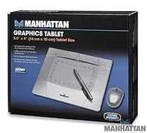 Its a little annoying to see that both the pen and the mouse require a single AAA battery each to work - I suppose thats one way that Manhattan cut down on the price of the tablet, though. Also, the mouse wheel doesn't really "scrool", instead it just sort of pushed (imagine a joystick that can only go in two directions) up or down to scrool. Kind of annoying to use, since pushing it makes it really easy to do a middle click.